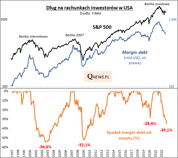 Dla odmiany, jest to jak na razie trzeci największy spadek margin debt na przestrzeni ćwierć wieku. Większy już niż w trakcie krótkotrwałego covidowego krachu w 2020 roku.