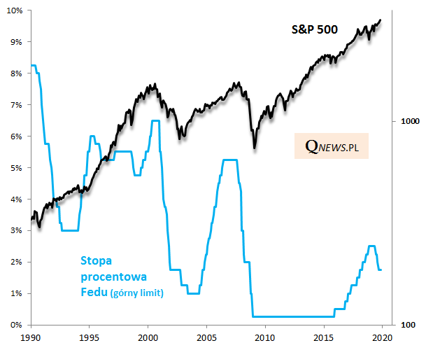 Zauważmy jeszcze, że w omawianych dwóch przypadkach "insurance cuts" z lat 90. po okresie pauzy Fed zaczął ... podnosić stopy. Na razie szef banku J. Powell odżegnuje się od takiego scenariusza, ale wydarzenia tego roku dobitnie pokazują, że w polityce Fedu nie ma nic pewnego, a o niespodzianki nietrudno. Wiele w ostatecznym rozrachunku zależeć będzie od sytuacji na ... Wall Street (tąpnięcie sprzed roku wymusiło zatrzymanie podwyżek stóp, a potem ich obniżki).
