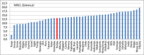 Uwagę zwraca mocne przesunięcie się Niemiec w zestawieniu. Nasz sąsiad przeskoczył z pozycji 14. na 21. wśród najtańszych rynków. Mimo to, z P/E na poziomie ok. 13,7 Niemcom i tak ciągle daleko do wycenianych „na bogato” amerykańskich akcji (16,3).