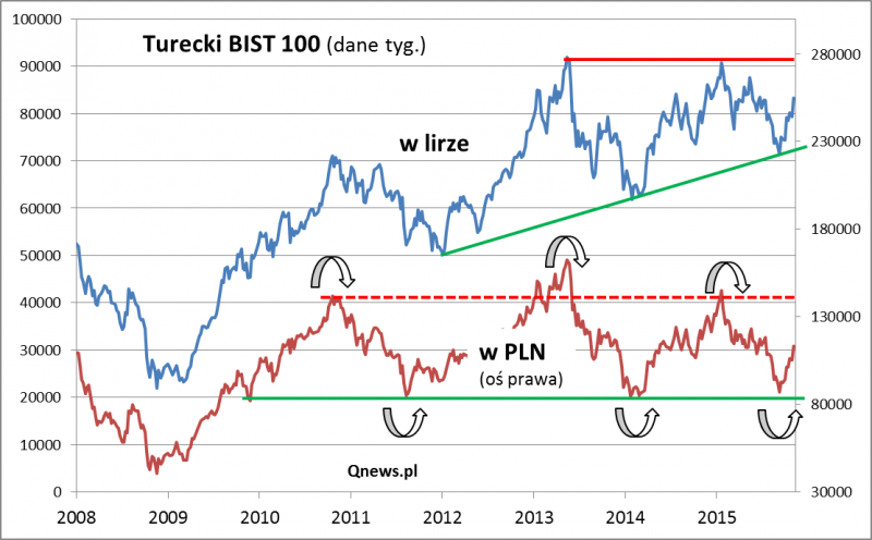 Do podobnych wniosków prowadzi analiza wycen tureckich walorów.