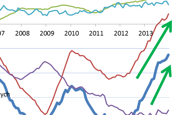 To świetne informacje. Systematycznie poprawiające się saldo na rachunku obrotów bieżących relatywnie korzystnie pozycjonuje nasz kraj w dobie przykręcania kurka z pieniędzmi przez amerykański Fed. Warto zwrócić uwagę, że w przeszłości cykliczne trendy wzrostowe na GPW ulegały załamaniu (VI 2007, wiosna 2011), gdy pogłębiało się (a nie zmniejszało jak obecnie) ujemne saldo obrotów bieżących.