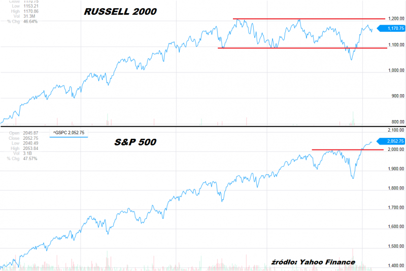 Część analityków martwi jednak fakt, że nowe szczyty S&P 500 nie zostały potwierdzone przez małe spółki.