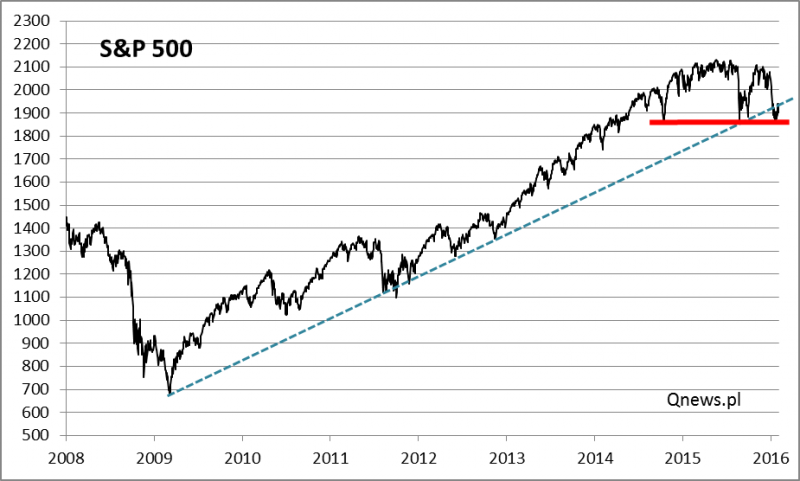 Sytuacja na amerykańskim rynku akcji pozostaje problematyczna. Trudności z kontynuacją odbicia S&P 500 od poziomu wsparcia leżącego na wysokości dołków z sierpnia ub.r. i października 2014 r. sprawiają, że groźba przebicia tego wsparcia nie została jeszcze oddalona.