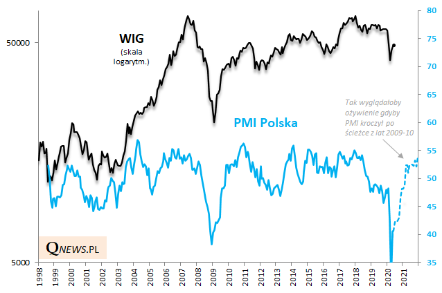 Gdyby PMI miał kontynuować "V-kształtne" odbicie na wzór lat 2009-10, byłby to z pewnością potężny impuls także dla krajowego rynku akcji.