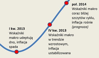 Ta diagnoza będzie jednak stopniowo ulegała modyfikacji na przestrzeni tego roku. Spróbujmy sobie wyobrazić sytuację np. za pół roku. Jeśli wszystko pójdzie zgodnie z planem, wskaźniki makro znajdą się dużo bliżej historycznych szczytów (a stamtąd nie będzie już wiele miejsca na dalszą poprawę), zaś inflacja będzie być może już w wyraźnym trendzie wzrostowym, prowokując spekulacje na temat zaostrzenia polityki pieniężnej. Pod tym względem perspektywy przedstawiają się inaczej, niż np. w pierwszej połowie ub.r., kiedy gospodarka dopiero podnosiła się z dna cyklu (potencjał był więc ogromny), a RPP cięła stopy procentowe (a w dalszej perspektywie prawdopodobne było utrzymanie stóp na niskim poziomie).