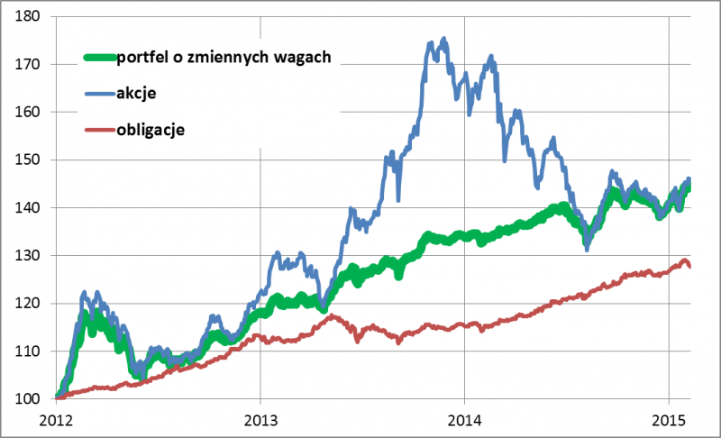 Rys. 4. Przykładowe wagi akcji i obligacji w portfelu według omawianego modelu