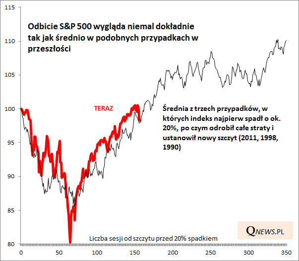 O ile korekta spadkowa rozgrywająca się w ostatnich tygodniach dla niektórych rynków okazuje się bolesna, to w przypadku amerykańskiej giełdy jest to - przynajmniej na razie - typowa "zadyszka" w trakcie wspinaczki. Na tym etapie trudno byłoby założyć, że indeks S&P 500 na dobre zboczył ze ścieżki, o której pisaliśmy dwa tygodnie temu, po której przebiegały średnio podobne odreagowania w latach 2011, 1998, 1990.