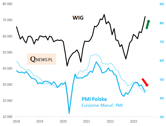 WIG blisko rekordu, PMI bliżej dołka - jak to tłumaczyć?