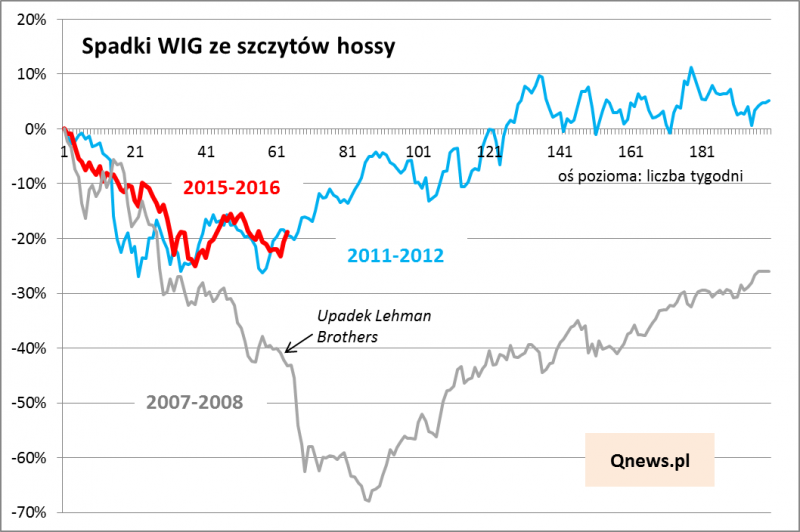 Wnioski? Wygląda na to, że jak na razie WIG kroczy raczej ścieżką z lat 2011-2012 (czyli: najpierw krach, potem huśtawka nastrojów), niż tą z lat 2008-2009 (nieustanna katastrofa). Gdyby ta analogia miała się utrzymać, to byłoby jeszcze sporo przestrzeni na odrabianie strat w dalszej części roku.