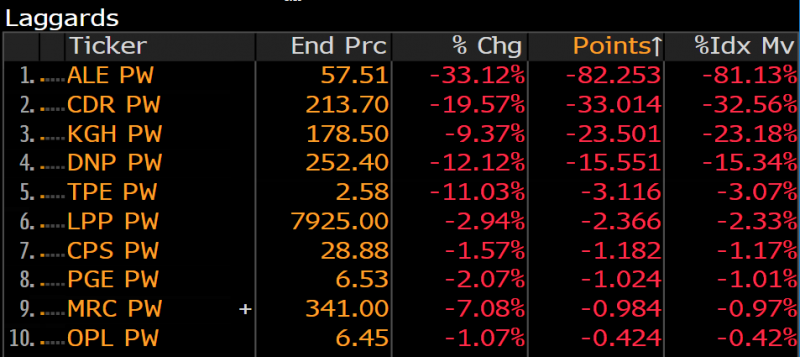 Z jednej strony jest to efekt słabej postawy niektórych komponentów indeksu takich jak Allegro (wg danych Bloomberga spadek kursu niedawnego debiutanta odpowiada w przeszło 80% za zniżkę WIG20 od styczniowej górki) czy CD Projekt ...