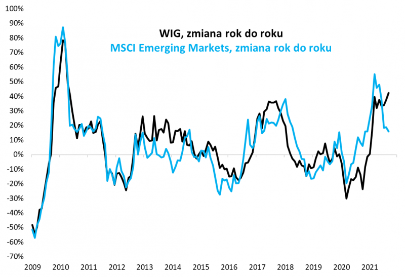 Rys. 1. W tym roku krajowe akcje mocniejsze niż rynki wschodzące