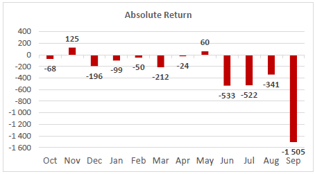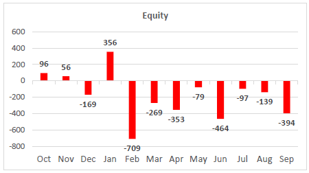 W oczy rzuca się fakt, że wrzesień był już ósmym (!) miesiącem nieprzerwanych odpływów kapitału z funduszy akcyjnych.
