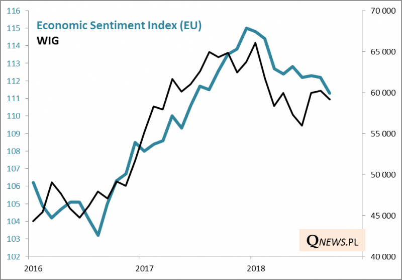 Analizowanie zależności między polską gospodarką i giełdą, to z natury ciężkie zadanie - wiele zależy np. od użytego wskaźnika makro. Jednym z takich wskaźników jest Economic Sentiment Index dla strefy euro (ESI).