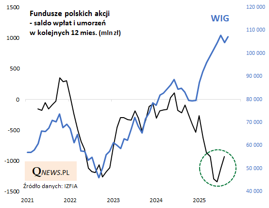 Wskaźnik przepływów w funduszach akcji odbija od dna