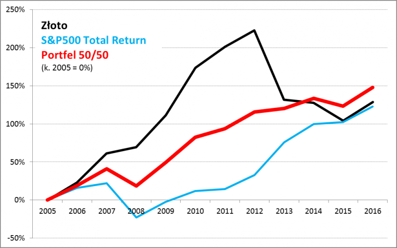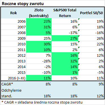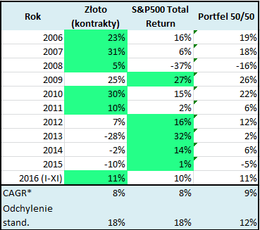 Rys. 1. Dodanie złota do portfela pozwalało historycznie uzyskać bardziej systematyczne wyniki