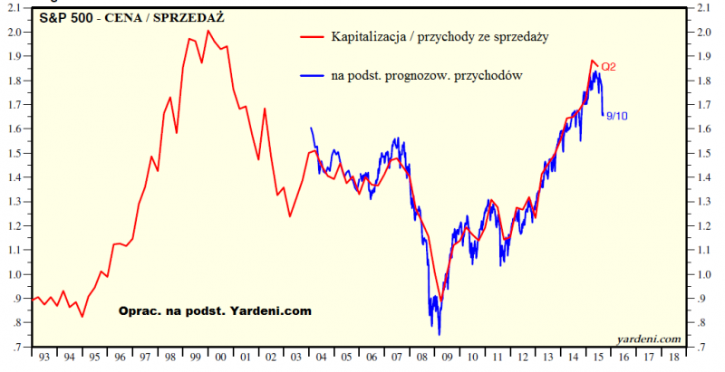 Wskaźnik ceny do przychodów ze sprzedaży spółek z S&P 500