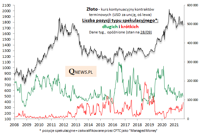 Jutro minie dokładnie 14 miesięcy od ustanowienia szczytu hossy na rynku złota. Od tego czasu notowania szlachetnego metalu przeżywają "pełzającą" korektę. To rozczarowujące zachowanie zaczyna odciskać coraz wyraźniejsze piętno na nastrojach inwestorów na tym rynku. Dobrze obrazują to monitorowane przez nas dane CFTC (Commodity Futures Trading Commission) na temat tzw. pozycji typu spekulacyjnego w kontraktach terminowych (futures) na złoto.