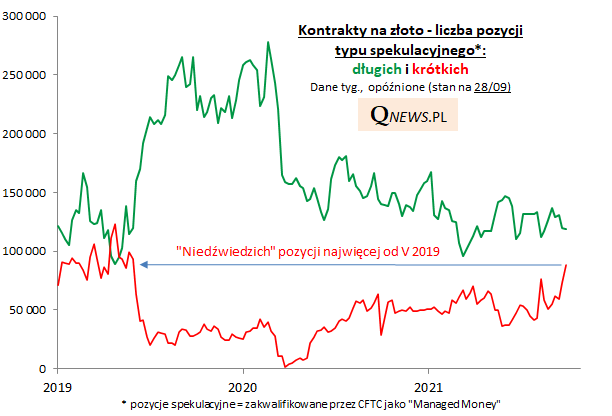 Historycznie sytuacja, w której liczba pesymistycznych zakładów zbliżyła się do optymistycznych czasem wystarczała do ustanowienia lokalnych dołków na omawianym rynku. Czasem trzeba było jednak poczekać na sytuację, w której było więcej krótkich niż długich pozycji (ostatnio w 2019 roku). Mówiliśmy wtedy o "kapitulacji" optymistów, która paradoksalnie wróżyła nadejście silnych fal wzrostowych (2019-20, 2016). Na razie o takiej kapitulacji nie można jednak mówić - zobaczymy jak sytuacja rozwinie się w kolejnych tygodniach.