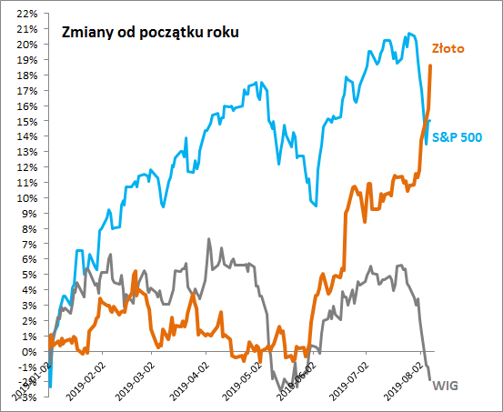 Od dawna trzymamy się tezy, że mogące się pochwalić wielowiekową tradycją inwestycyjną złoto ma swoje miejsce w zdywersyfikowanym portfelu. Były chwile, w których można było zwątpić w słuszność tej tezy, bo ceny szlachetnego metalu pozostawały daleko w tyle za innymi aktywami, w szczególności modnymi amerykańskimi akcjami. Ale ten rok póki co wynagradza cierpliwe podejście. Pod względem stopy zwrotu liczonej od początku roku (YTD) złoto wyprzedziło ostatnio indeks S&P 500, o polskich akcjach już nawet nie wspominając.